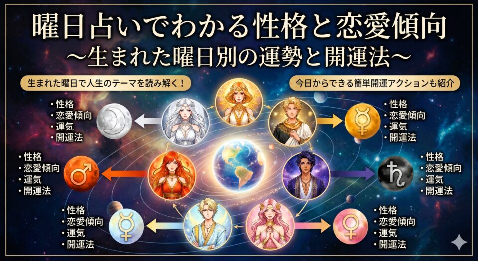 この記事では、あなたの生まれた曜日からわかる性格・恋愛傾向・運気の流れを、やさしく&ちょっぴり深く解説していきます。