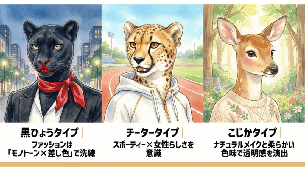 ここでは“黒ひょう・チーター・こじか”それぞれのタイプに合った見た目&内面磨きのコツを紹介します!