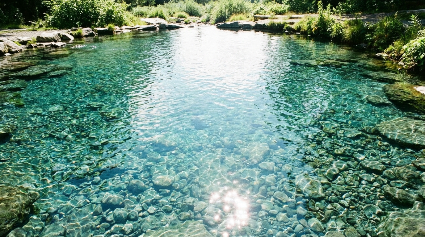 澄んだお湯の温泉は、運気上昇のサインとされます。