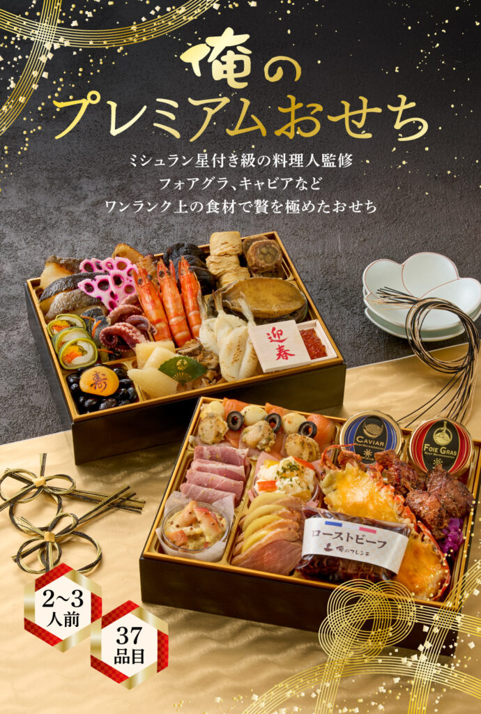 16:21,600円(税込)「俺の」監修「俺のプレミアムおせち」(2段・37品・2〜3人前)