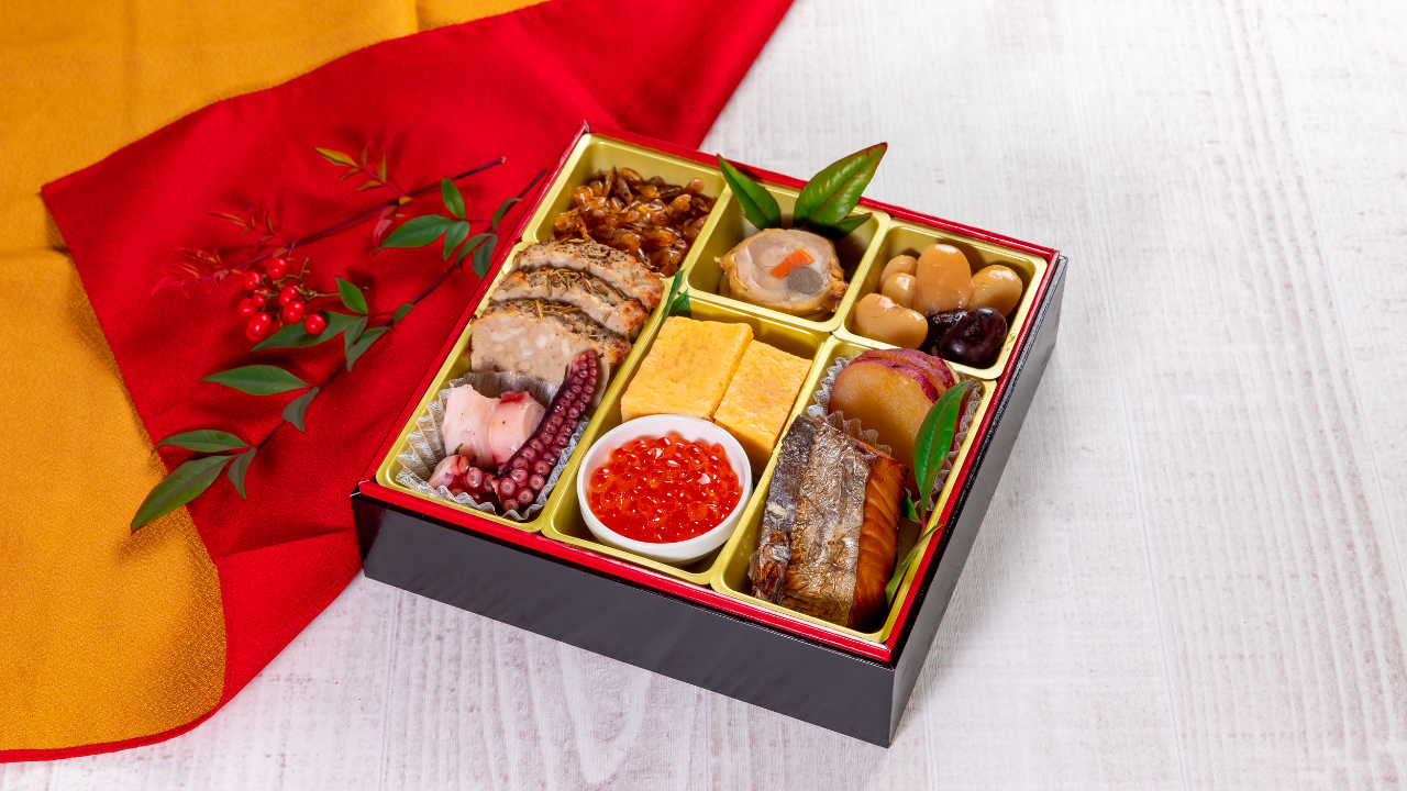 全60品目が丁寧に盛り込まれ、4〜5人前の構成で、家族や親戚が集まる年始の食卓にふさわしい華やかさと品格を備えた一品です。