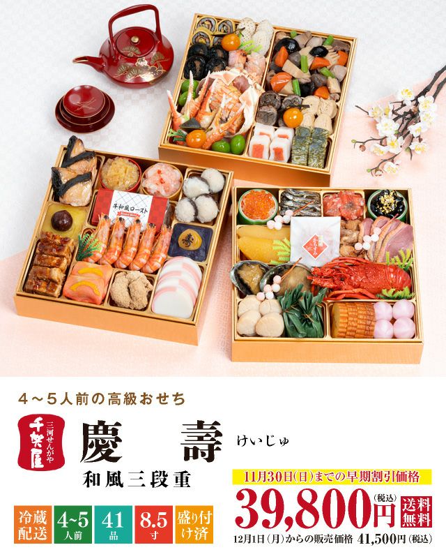 6. 41,500円(税込)・慶壽(けいじゅ)【割烹料亭千賀監修】(3段・41品・4〜5人前)