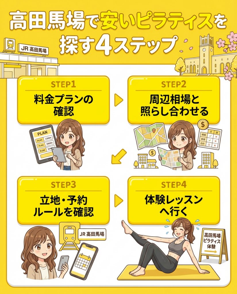 池袋エリアで安くピラティスを始めるために、最初に各スタジオの料金プランをチェックし、月額制・回数制・都度払いなどの違いを把握します。自分のライフスタイルに合っているか確認しましょう!